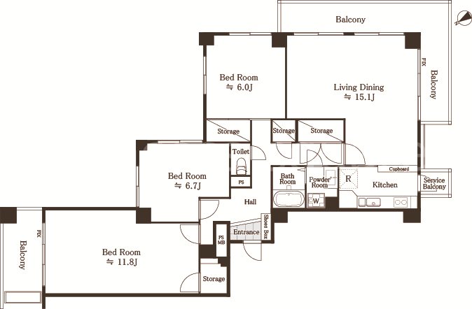 | 5階 | 3LDK 100.01㎡ | 28.5万円 15,000円 | - 敷