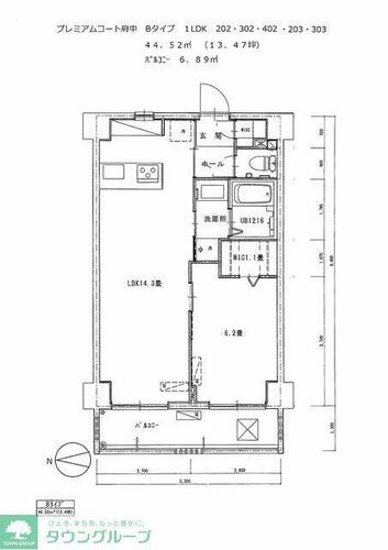 | 2階 | 1LDK 44.52㎡ | 15.4万円 11,000円 | - 敷