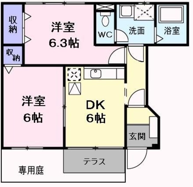 | 1階 | 2DK 46.06㎡ | 6.2万円 3,900円 | - 敷