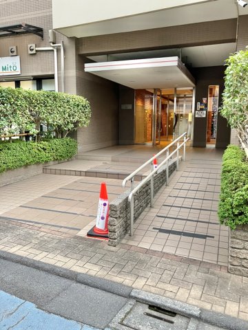道路にあわせて段々状になっている珍しいデザインのマンションです。エントランスなどは比較的小さめです。と、いうのも1Fに数件のテナントが入ってるからだと思います。特に不便ではないです。