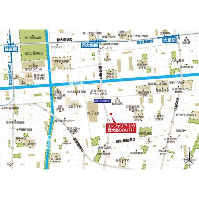 コンフォリア・リヴ西大島SOUTHの地図・周辺環境