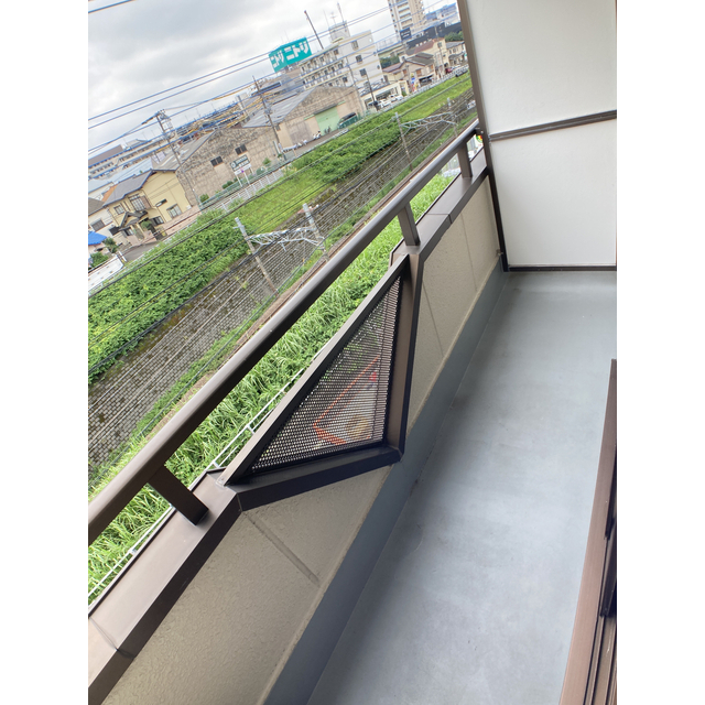 ベランダの壁の三角のスリットデザインが可愛い。