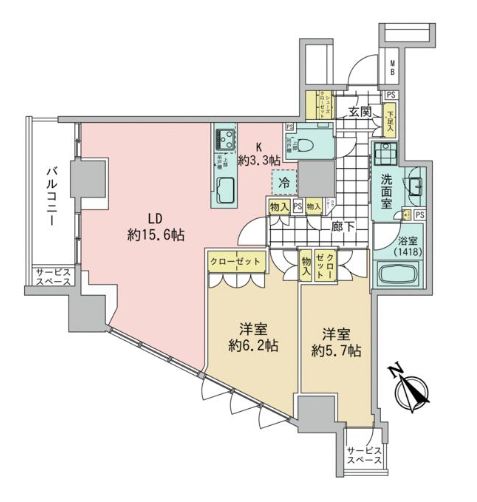 | 14階 | 2LDK 56.33㎡ | 30万円 15,000円 | - 敷
