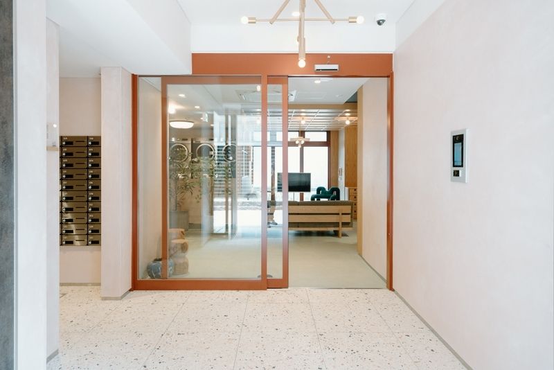 オートロックかつ居住階にしかエレベーターは停りません。共用部分は居住者と同伴者(人数制限あり)のみ利用可能です。