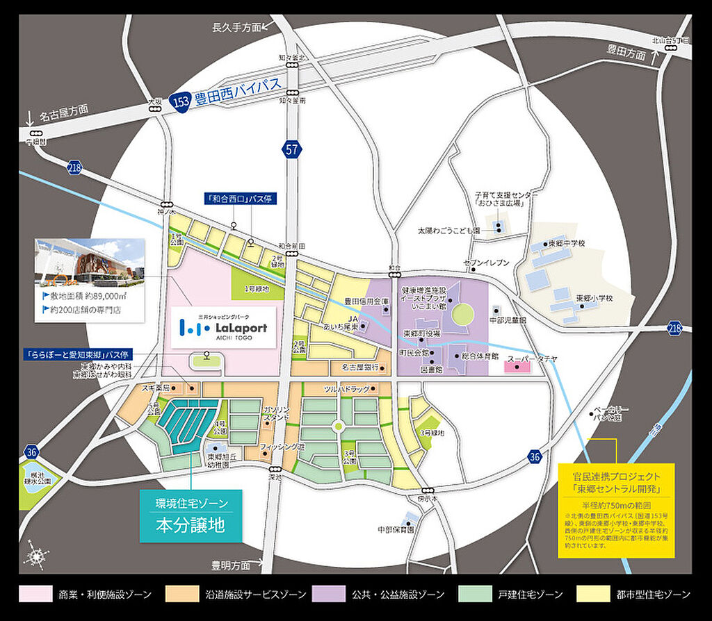 宅地造成及び特定盛土等規制法、法22条指定区域、土地区画整理法、都市再生特別措置法、地区計画(東郷セントラル地区計画 低層住宅地区A1)、建築協定、管理組合法人にご加入いただきます。本分譲地では、快適で良好な住環境を皆様に提供する為に、建築協定を設けております。 管理組合法人にご加入いただきます。 初回費用として3年分の管理費90,000円(管理費:2,500円/月)と管理組合入会一時金50,000円をご契約時にお支払いいただきます。 複数の区画をご購入する場合は区画数分の管理費をお支払いいただきます。 本分譲地では、快適で良好な住環境を皆様に提供する為に、建築協定・まちなみデザインガイドラインを設けております。 東郷セントラル地区計画内 売主((NO.4,5,6,8,10,17,18,23,28,29,30,31,36,37,41,45,46,49,50,52,56,57,60,61,63,64,69,70,77,78 【トヨタホーム】ららぽーと愛知東郷 徒歩8分のあたらしい街 (1)ららぽーと愛知東郷まで徒歩8分。お買い物もお子様の習い事も徒歩圏内。 (2)道路を屈曲させたり、イメージハンプを用いて、自動車のスピードを抑制。歩行者専用道路を配置し、車と歩行者が安全に共存できる街づくり計画です。 (3)「歩いて暮らせるまち」半径約750mの範囲内に都市機能が集約されたまち。東郷町巡回バス、名鉄バス「ららぽーと愛知東郷」停まで徒歩8分。 | ||||