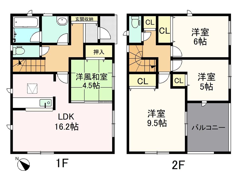 | 設備 | 設計住宅性能評価書 / 建設住宅性能評価書(新築時) / フラット35・S適合証明書 / フラット35Sに対応 / 地盤調査済 / 駐車2台可 / 即引渡可 / 2沿線以上利用可 / LDK18畳以上 / 省エネ給湯器 / システムキッチン / 浴室乾燥機 / 陽当り良好 / 全居室収納 / 南側道路面す / 角地 / 和室 / シャワー付洗面化粧台 / 対面式キッチン / セキュリティ充実 / EV車充電設備 / ワイドバルコニー / 浴室1坪以上 / 2階建 / 南面バルコニー / 複層ガラス / オートバス / 温水洗浄便座 / 床下収納 / 浴室に窓 / TVモニタ付インターホン / ウォークインクローゼット / 都市ガス / 小学校 徒歩10分以内 / ルーフバルコニー / 浄水器 / スマートキー | ||||