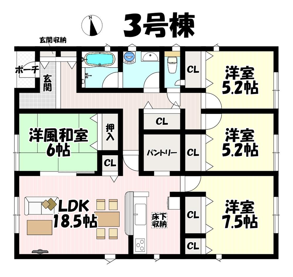 ※土地(建築条件なし)で「建物プラン例」が表記してある時、そのプラン例は特定の建築請負会社によるもので、当該建築請負会社以外で建てた場合、同様のものが同価格で建てられるとは限りません。また建築請負会社を特定するものではありません。