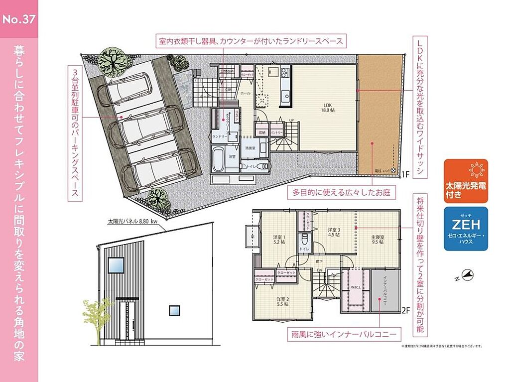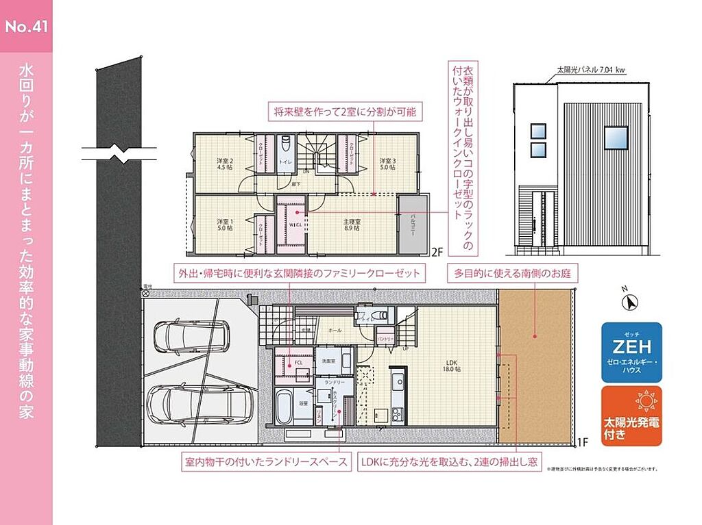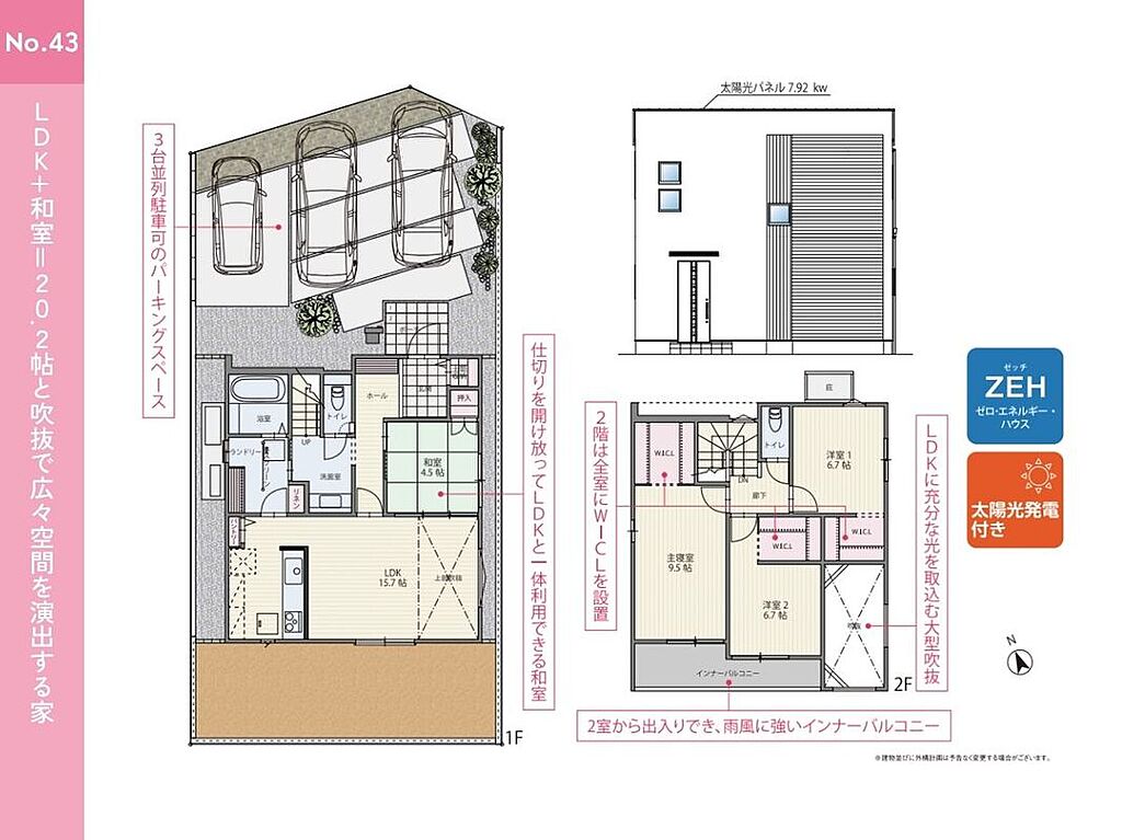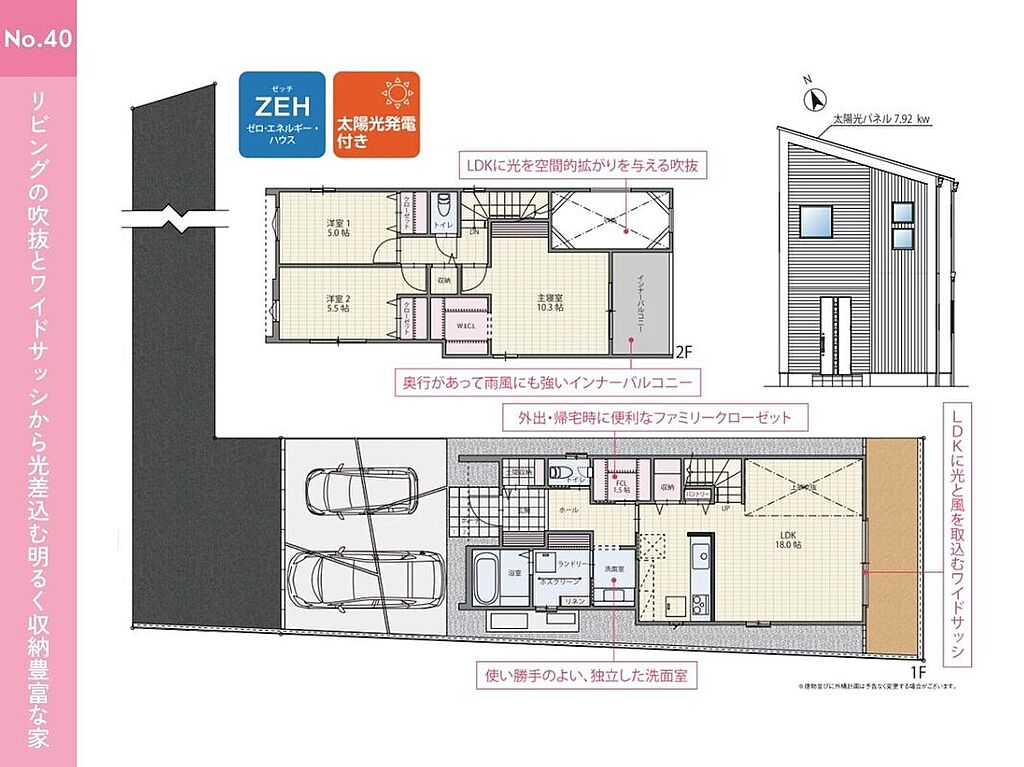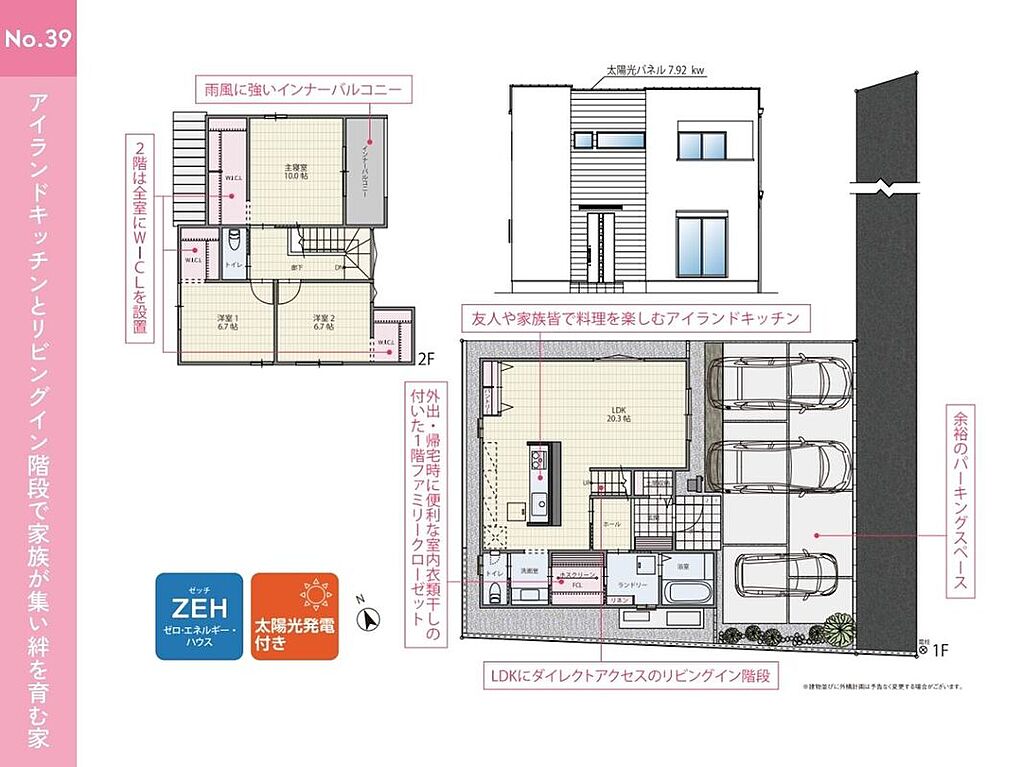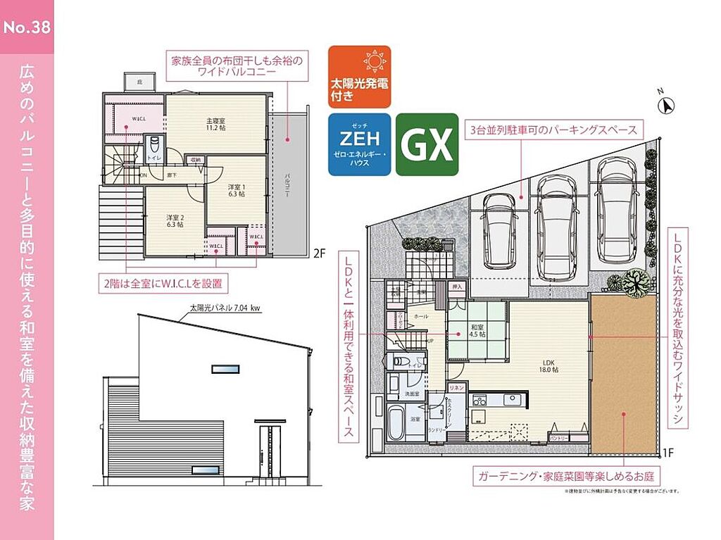告知事項あり ●並列3台駐車可能 来客時やお子様の将来の駐車スペースとしてもご利用いただけます ●南側のお庭あり ガーデニングや家庭菜園、BBQを楽しめるスペースです ●和室あり 客間としても、お子様の遊び場・お昼寝スペースにも最適です ●吹抜あり リビングの掃出し窓からだけでなく、上からも光が差し込む明るいお家に ●土間収納やファミリークローゼット、パントリー、WICLなど各所に収納が充実した間取りプラン ●家族構成の変化や使い方に合わせて将来的に2部屋に分割することが可能な可変型間取り | ||||