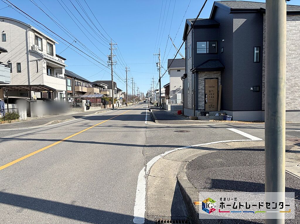 前面道路は交通量の少ない道路です。ゆとりがあり、駐車時もゆっくりと落ち着いて行える立地環境になっています♪
