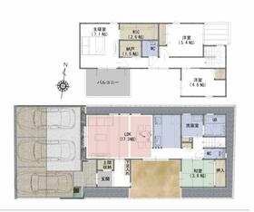 詳細を見る間取り4LDK建物面積112.94m²~117.28m²土地面積土地:95.42m2〜107.55m2(28.86坪〜32.53坪) 建物:112.94m2〜117.28m2(34.16坪〜35.47坪)築年月-