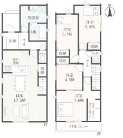 詳細を見る間取り5LDK 1号棟 1F:LDK15.7帖に隣接する洋室4.5帖はお子様の遊び場・奥様の家事室に便利!シューズクローク♪2F:主寝室6.7帖・洋室5.5帖・洋室5.5帖・洋室5.2帖 CL設置♪南面バルコニー♪建物面積104.97m²~105.8m²土地面積161.12m²~171.21m²築年月-3280万円