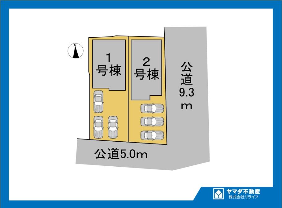 地目 | 宅地 | 道路付け | 道路幅:5m・9.3m、アスファルト舗装、南側公道5.0m、東側公道9.3mに接道 | ||