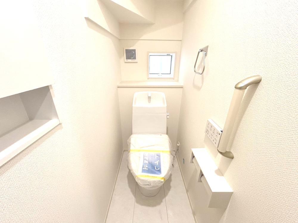 (1号棟)超表面平滑加工とイオンパワーの「セフィオンテクト」加工で、汚れが付きにくく落ちやすい仕様のトイレです。またツイントルネード洗浄で少ない水でも前方の返し部分から後方部までしっかり洗浄できます