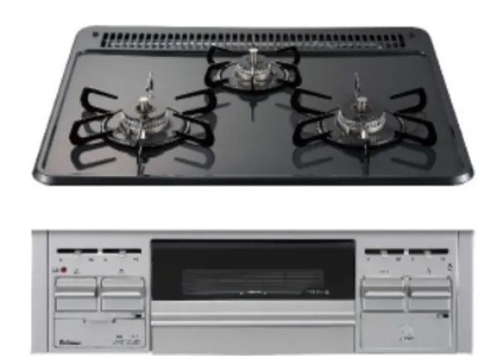 角を極力少なくした、お手入れのしやすい「すっきりクリーンごとく」。3口全てに温度センサーが付き、高温炒め機能付き(右コンロ)。片面焼きグリルも搭載しています。消し忘れ消火機能付き、安全で機能的なガスコンロです。