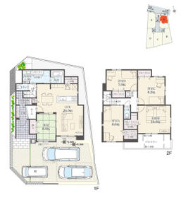 土地面積土地:166.55m2(50.38坪)〜182.77m2(55.28坪) 建物:141.23m2(42.72坪)〜142.48m2(43.10坪)