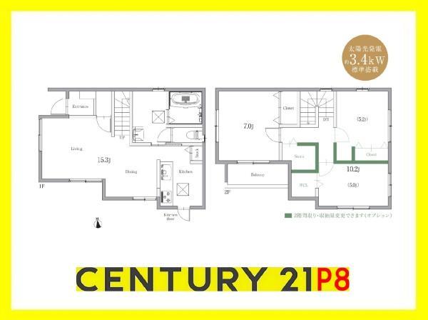 設備 | 太陽光発電システム / 駐車2台可 / 南向き / システムキッチン / 陽当り良好 / 全居室収納 / LDK15畳以上 / シャワー付洗面化粧台 / 対面式キッチン / 浴室1坪以上 / 2階建 / 南面バルコニー / 複層ガラス / オートバス / 温水洗浄便座 / 床下収納 / 浴室に窓 / TVモニタ付インターホン / 節水型トイレ / 通風良好 / 全居室フローリング / ウォークインクローゼット / 全居室複層ガラスか複層サッシ / 都市ガス / 全室2面採光 / 小学校 徒歩10分以内 / 平坦地 | ||||