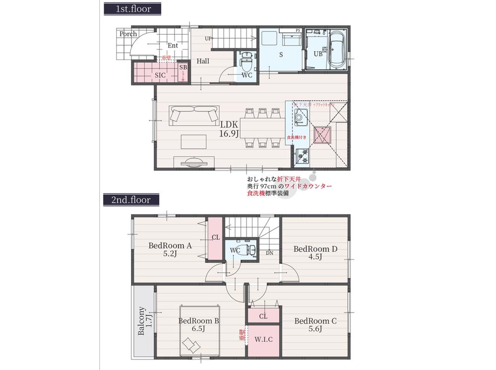 | 設備 | 設計住宅性能評価書 / 建設住宅性能評価書(新築時) / フラット35Sに対応 / 地盤調査済 / 年内引渡可 / 駐車2台可 / 即引渡可 / 2沿線以上利用可 / 年度内引渡可 / 省エネ給湯器 / スーパー 徒歩10分以内 / 市街地が近い / システムキッチン / 浴室乾燥機 / 陽当り良好 / 閑静な住宅地 / LDK15畳以上 / 整形地 / シャワー付洗面化粧台 / ワイドバルコニー / トイレ2ヶ所 / 浴室1坪以上 / 2階建 / 南面バルコニー / 複層ガラス / オートバス / 温水洗浄便座 / 床下収納 / 浴室に窓 / TVモニタ付インターホン / 節水型トイレ / 緑豊かな住宅地 / 都市近郊 / 通風良好 / 全居室フローリング / ウォークインクローゼット / 全居室複層ガラスか複層サッシ / 都市ガス / シューズインクローク / 平坦地 / 食器洗乾燥機 / 周辺交通量少なめ / 浄水器 / 高機能トイレ | ||||