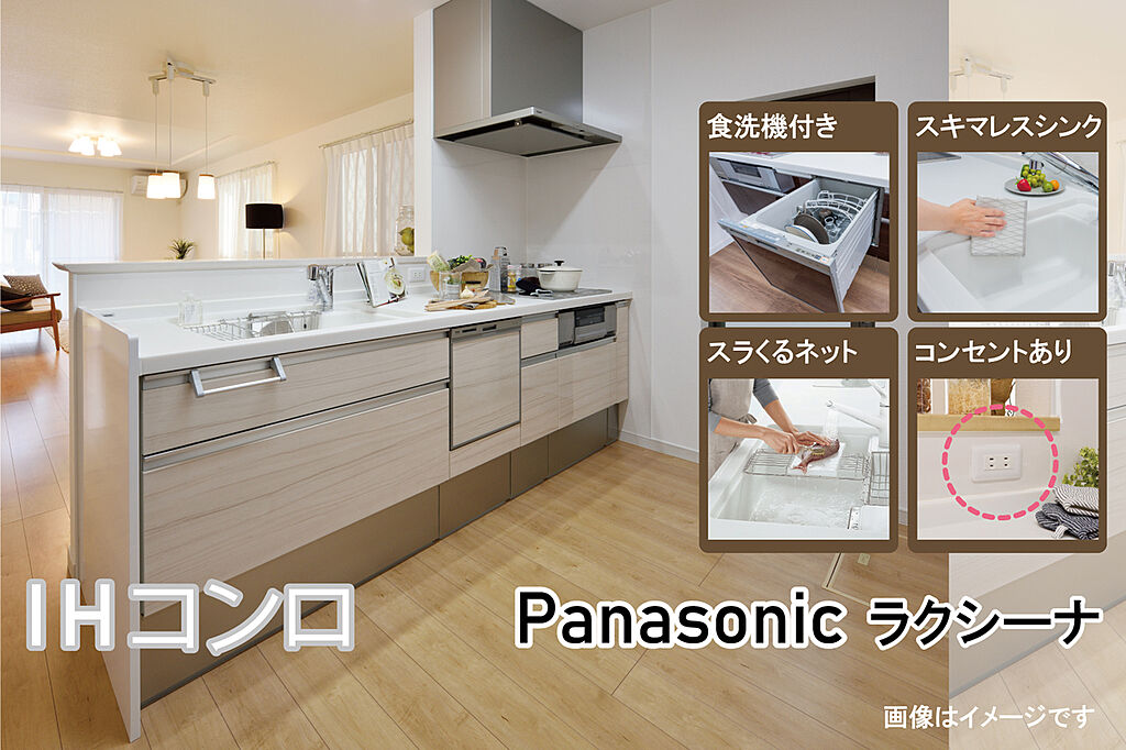 家事の時短が叶う食器洗浄乾燥機付きです。コンセントを備え、調理家電の使用もスムーズです。