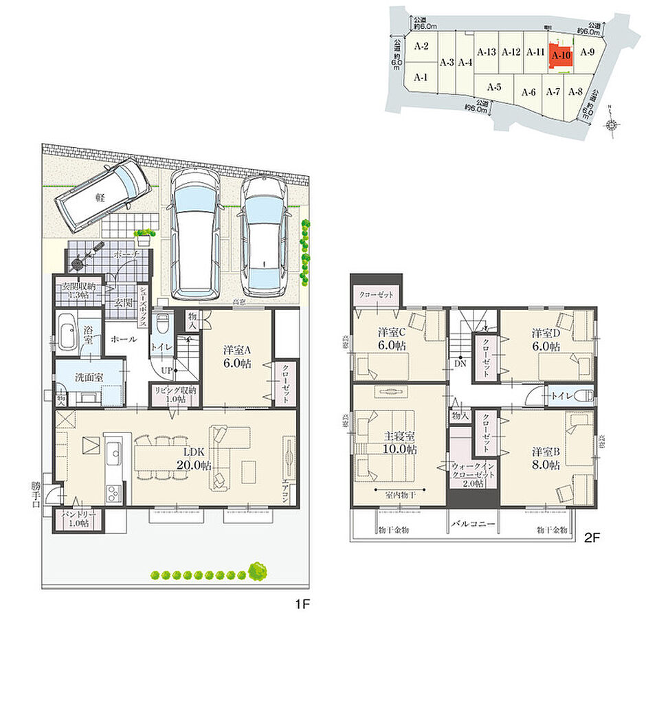【全体区画図】広々敷地で駐車3台~4台可能です!4LDK・5LDKに適材適所の収納で快適な住まいをサポート!お問合せお待ちしております。