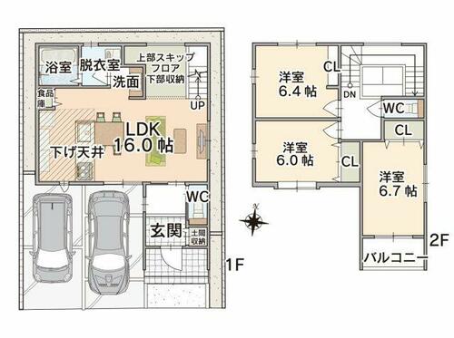 | 設備 | 収納スペース・追焚機能・都市ガス・フローリング・浴室乾燥機・ウォシュレット・システムキッチン・カウンターキッチン・モニタ付インターホン・庭・トイレ2ヶ所・床下収納・浄水器・食器洗浄乾燥機・複層ガラス・電気・上水道・下水道 | ||||