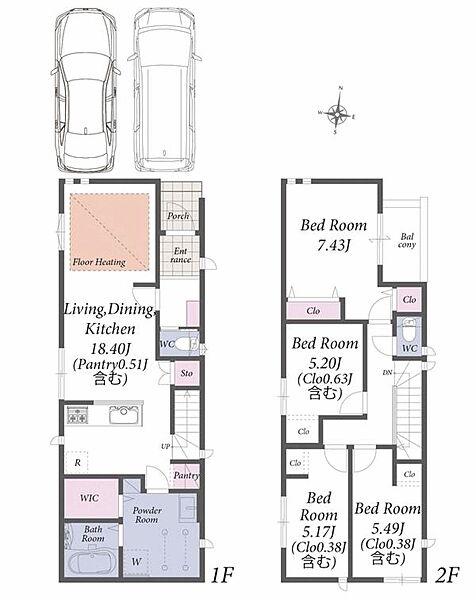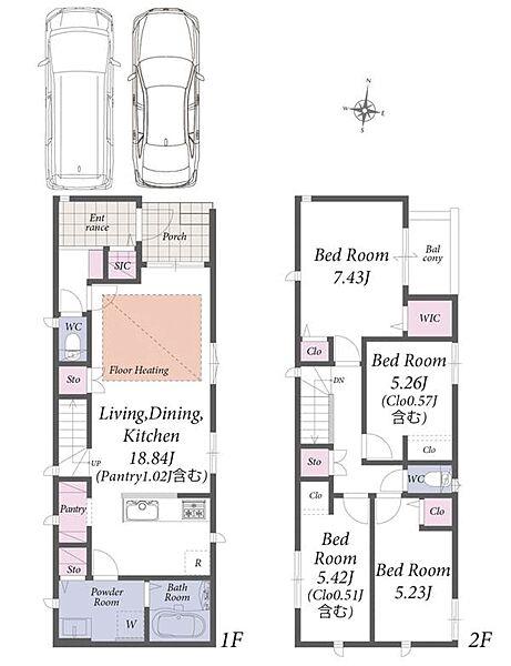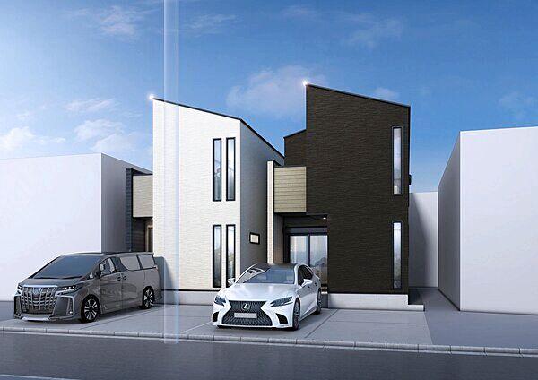 並列2台駐車可能なカースペース付き。2階建て新築分譲住宅のご紹介です。