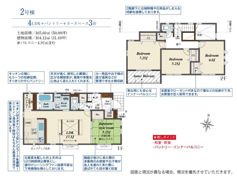 ※土地(建築条件なし)で「建物プラン例」が表記してある時、そのプラン例は特定の建築請負会社によるもので、当該建築請負会社以外で建てた場合、同様のものが同価格で建てられるとは限りません。また建築請負会社を特定するものではありません。