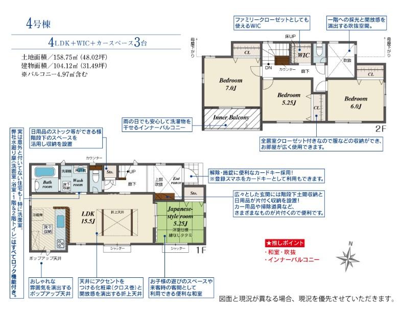 | 建物面積 | 104.12㎡~105.57㎡(31.49坪~31.93坪) | 土地面積 | 158㎡~167.89㎡(47.79坪~50.78坪) | ||