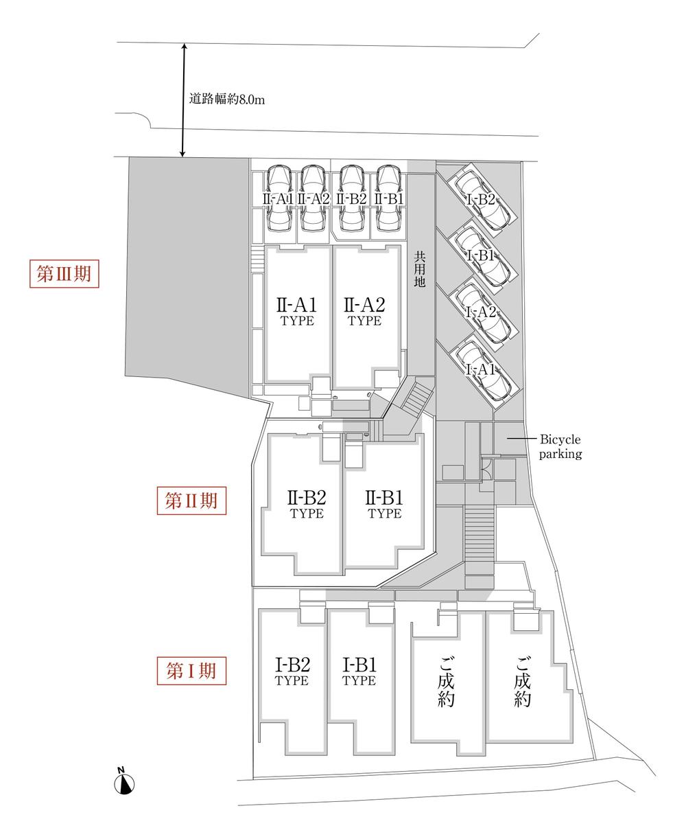 | 構造および階数 | 木造連棟式2階建[4.3倍2×4工法]第I期/第II期 | 建ぺい率・容積率 | 建ペい率:60%、容積率:200% | ||