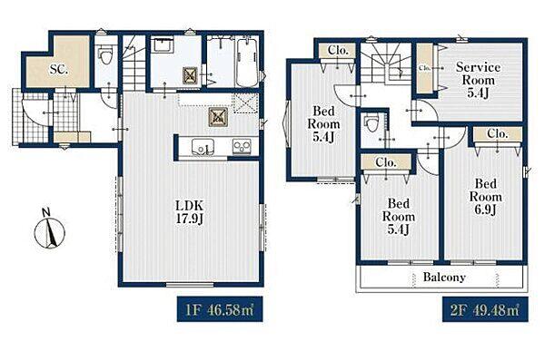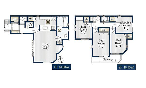 | 建物面積 | 91.35㎡・96.06㎡ | 土地面積 | 91.86㎡・94.34㎡ | ||