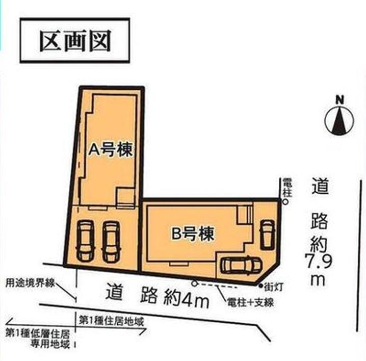 地目 | 宅地 | 道路付け | 道路幅:4m~7.9m、アスファルト舗装、【1号棟】一方 : 南 4m 公道、【2号棟】角地 : 東 7.9m 公道、南 4m 公道 | ||
