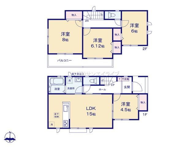 ※土地(建築条件なし)で「建物プラン例」が表記してある時、そのプラン例は特定の建築請負会社によるもので、当該建築請負会社以外で建てた場合、同様のものが同価格で建てられるとは限りません。また建築請負会社を特定するものではありません。