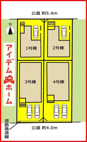 地目 | 地目:宅地 | 道路付け | 道路幅:4m~5.4m、アスファルト舗装、接道1:二方 公道 北 幅員5.4m/接道2:二方 公道 南 幅員4m/私道負担無 | ||