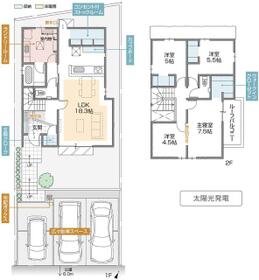 詳細を見る間取り2LDK+2S(納戸)〜4LDK建物面積92.83m²~108.7m²土地面積土地:89.28m2〜107.69m2 建物:92.83m2〜108.70m2築年月-