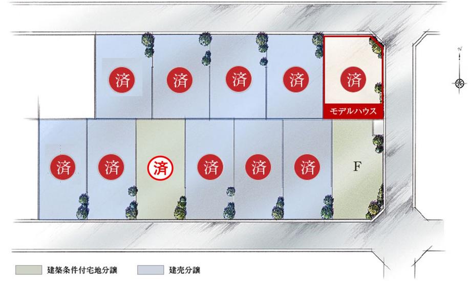 ※建築条件土地の情報内に掲載されている、建物プラン例は、土地購入者の設計プランの参考の一例であって、プランの採用可否は任意です。
