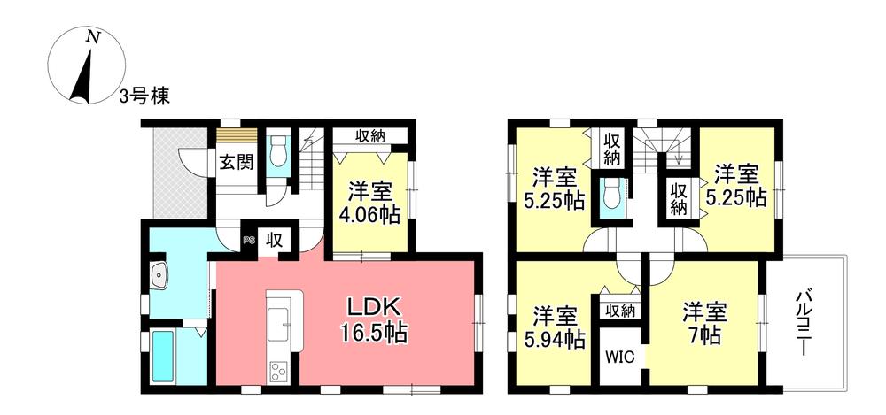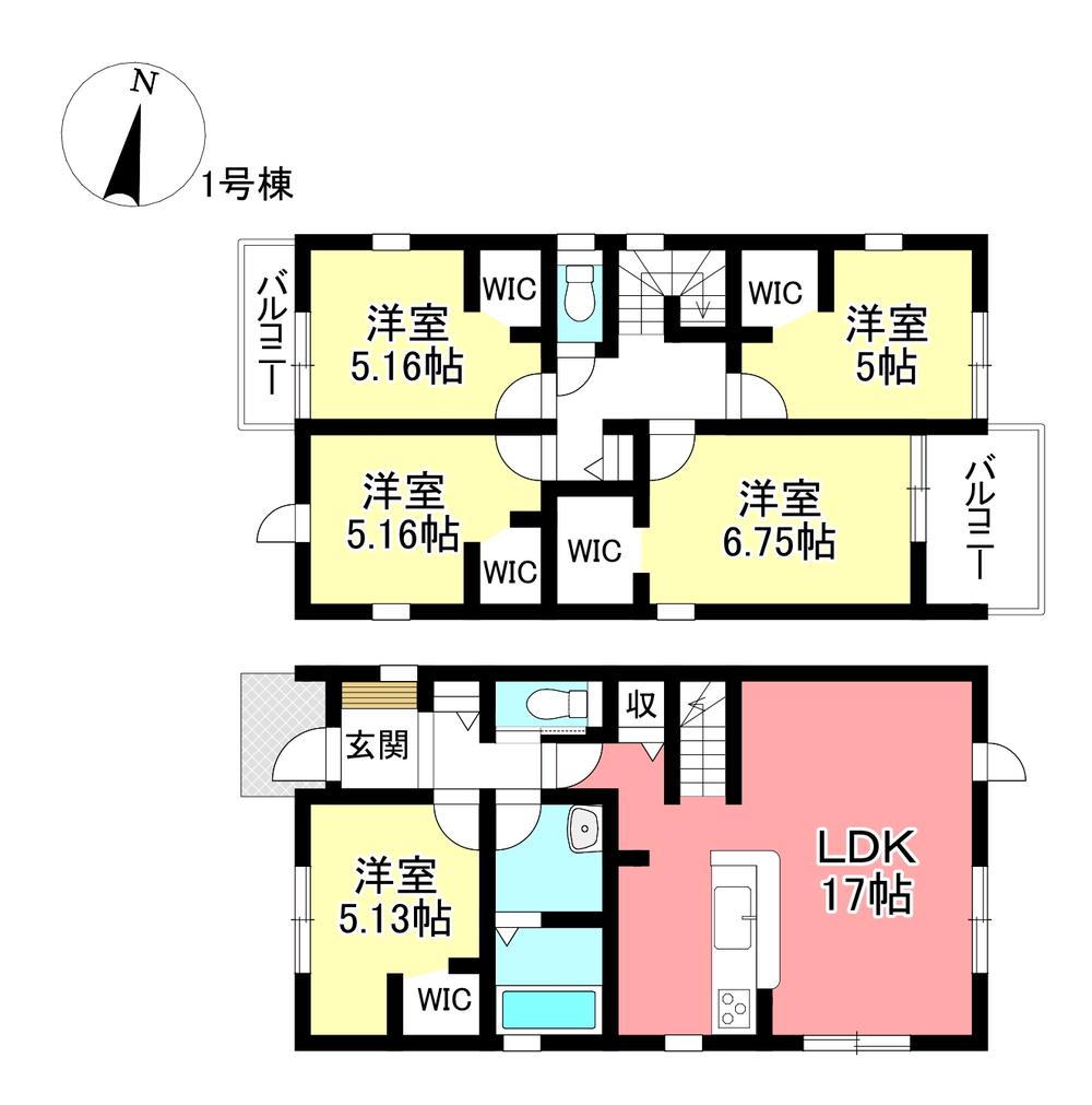 建物面積 | 105.99㎡・106㎡(32.06坪・32.06坪) | 土地面積 | 149.96㎡・173.83㎡(45.36坪・52.58坪) | ||