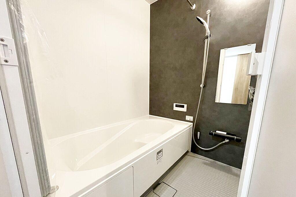 浴室の床本体の上に、断熱層+水はけのよい溝付きの材質が載っている多重構造!表面の溝は浅めになっているので掃除をするときにスポンジが奥まで届きやすく、汚れが残る心配も少なくて済みます。