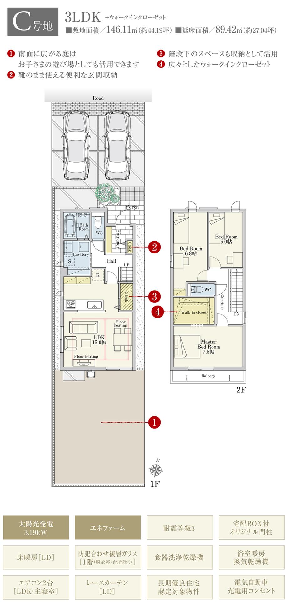 | 建物面積 | 89.42㎡ | 土地面積 | 146.11㎡ | ||
