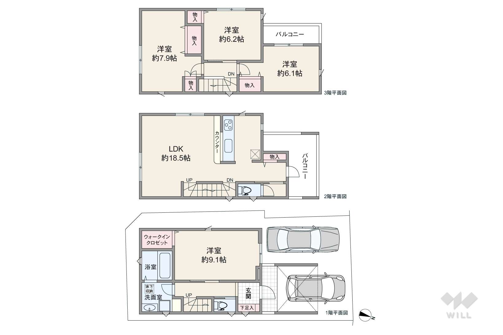 詳細を見る間取り2LDK+2S(納戸)〜4LDK建物面積88.57m²~91.67m²土地面積土地:96.54m2〜103.14m2 建物:88.57m2〜91.67m2築年月-
