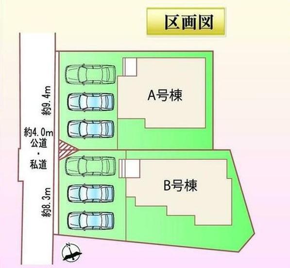 前面は、西側約4.0mの道路に接道しています。ゆとりがあり、落ち着いて駐車できます♪舗装されている道路なので、ベビーカー等で通っても安心ですね♪