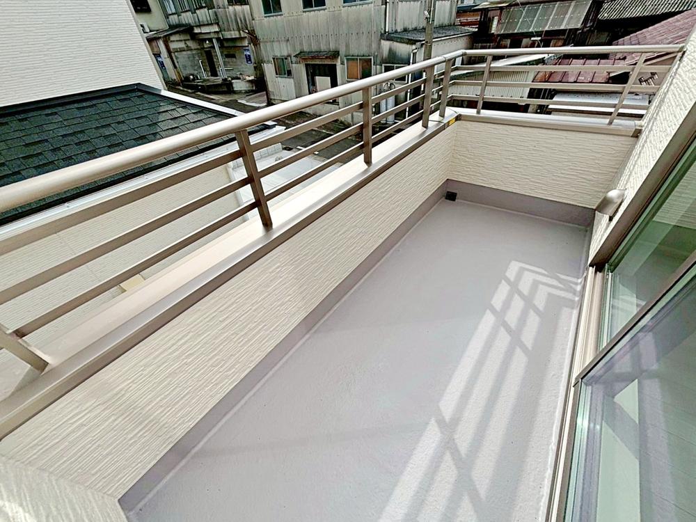 B号棟奥行を広めに取ったワイドバルコニー♪家族分の洗濯物もしっかり干せます。日当たりも良く、毎日のお洗濯が楽しくなりそう♪