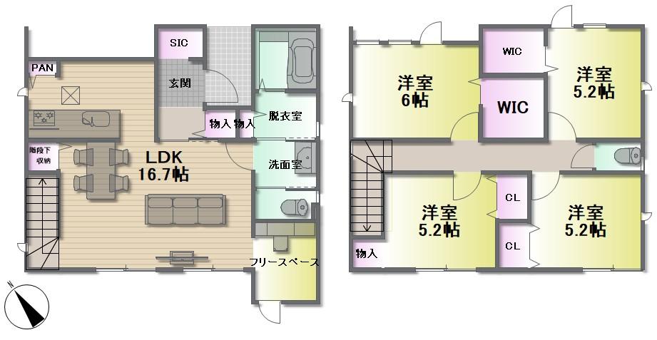 ※土地(建築条件なし)で「建物プラン例」が表記してある時、そのプラン例は特定の建築請負会社によるもので、当該建築請負会社以外で建てた場合、同様のものが同価格で建てられるとは限りません。また建築請負会社を特定するものではありません。
