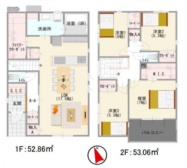 | 建物面積 | 105.72㎡・105.92㎡(実測) | 土地面積 | 175.46㎡・177.83㎡(実測) | ||