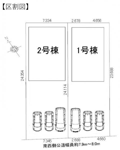 | 地目 | 地目:宅地 | 道路付け | 道路幅:7.9m、アスファルト舗装、接道1:一方 公道 南西 接面7.3m 幅員7.9m/私道無 | ||