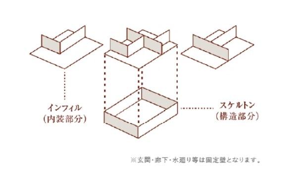 I.D.S工法は、自由な間取りを実現するSI(スケルトンインフィル)住宅にも対応し、ライフスタイルの変化に合わせて間取りの変更や設備メンテナンスが簡単にできるというメリットもあります。
