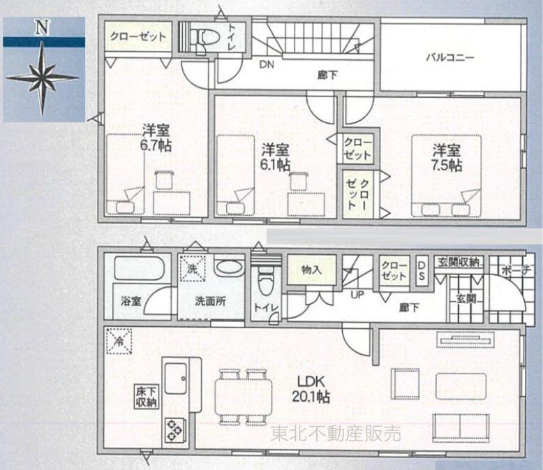 | 物件名 | 秋田市下新城中野 ☆最終1棟☆ ☆新築一戸建☆ ☆新築建売住宅☆ 東北不動産販売(株) | ||||