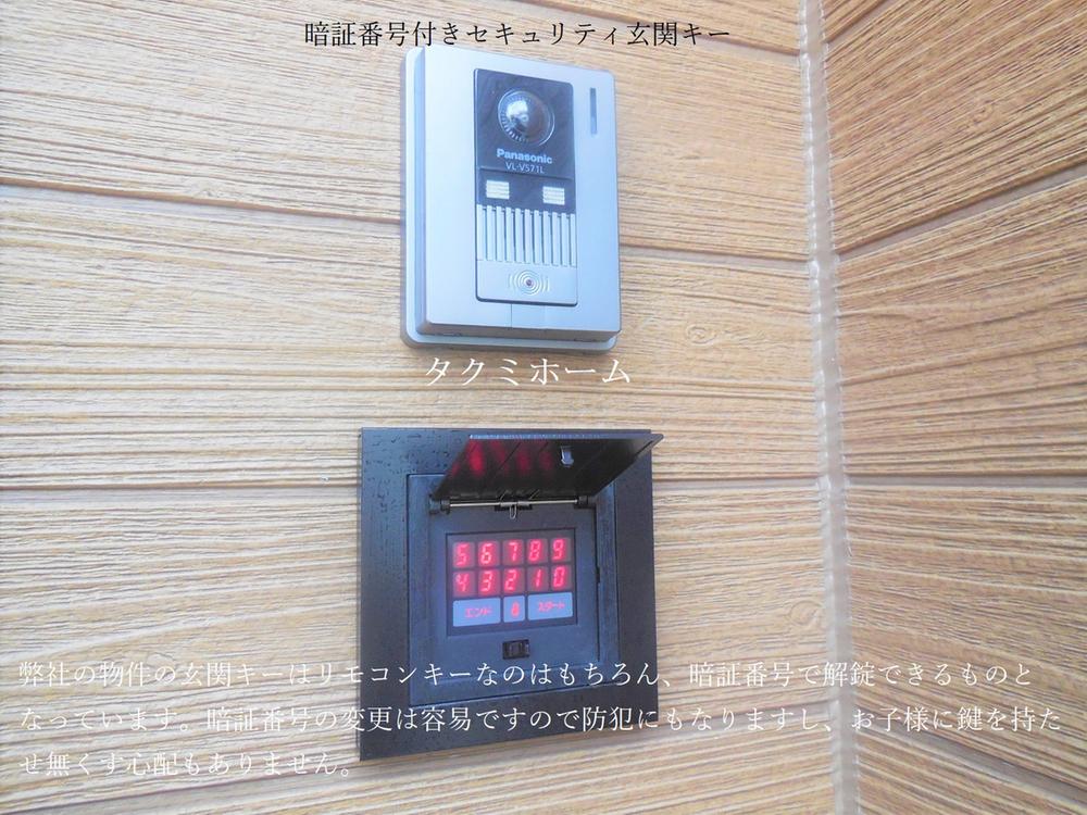 弊社の物件の玄関キーはリモコンキーなのはもちろん、暗証番号で解錠できるものとなっています。暗証番号の変更は容易ですので防犯にもなりますし、お子様に鍵を持たせ無くす心配もありません。