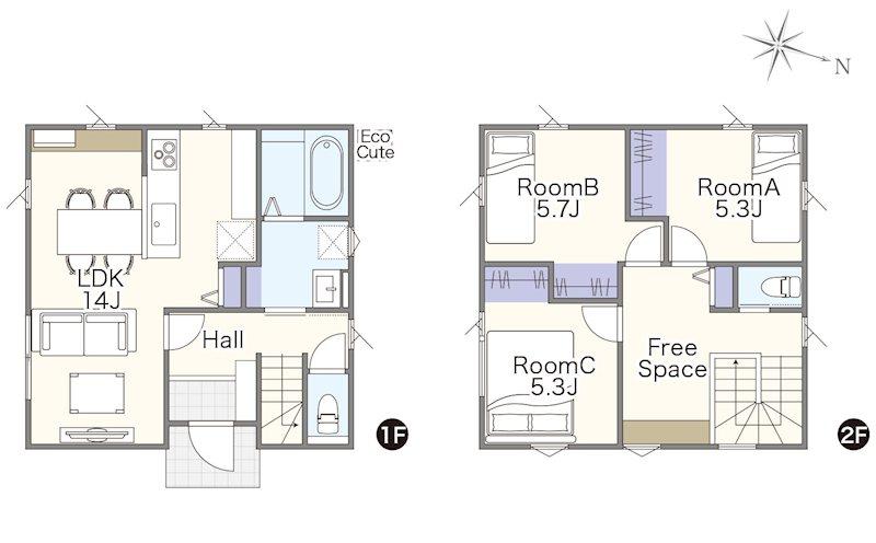 ※土地(建築条件なし)で「建物プラン例」が表記してある時、そのプラン例は特定の建築請負会社によるもので、当該建築請負会社以外で建てた場合、同様のものが同価格で建てられるとは限りません。また建築請負会社を特定するものではありません。