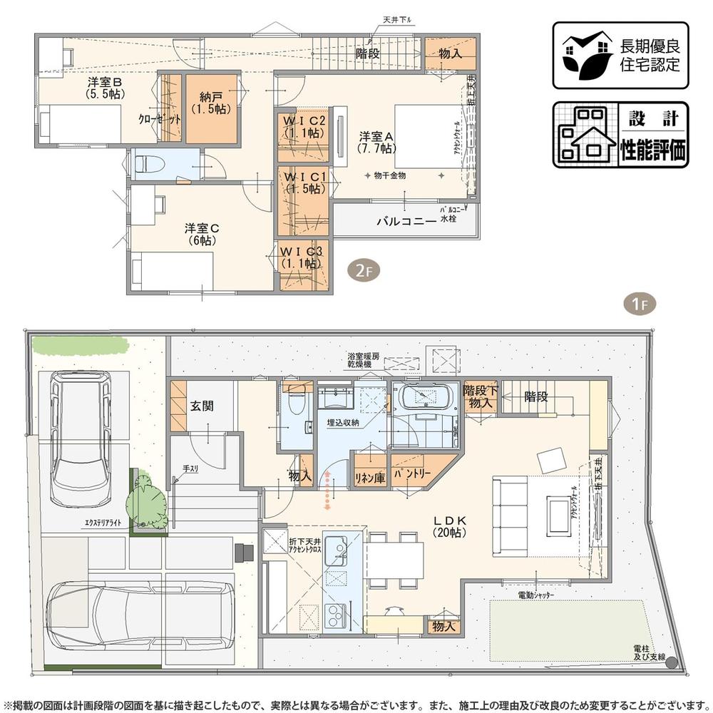 | 設備 | 長期優良住宅認定通知書 / 設計住宅性能評価書 / 省エネルギー対策 / 地盤調査済 / 駐車2台可 / 即引渡可 / 2沿線以上利用可 / LDK20畳以上 / 省エネ給湯器 / システムキッチン / 浴室乾燥機 / 全居室収納 / シャワー付洗面化粧台 / 対面式キッチン / EV車充電設備 / トイレ2ヶ所 / 浴室1坪以上 / 2階建 / 南面バルコニー / 複層ガラス / オートバス / 温水洗浄便座 / 浴室に窓 / TVモニタ付インターホン / 節水型トイレ / 南西向き / パントリー(食器・食品の収納庫) / ウォークインクローゼット / IHクッキングヒーター / リビング階段 / 全居室複層ガラスか複層サッシ / シューズインクローク / 全室南西向き / 納戸 / 食器洗乾燥機 / オール電化 / 浄水器 / バルコニー・屋上に水栓あり / スマートキー / 高機能トイレ | ||||