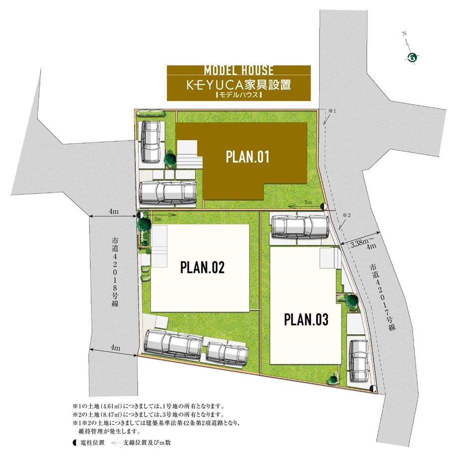 | 備考 | 有「第一種高度地区」 / 設備:東京電力、公営水道、公共下水道、オール電化、建築確認番号:第R06SHC120979号(2024年11月12日)他、※各号地の上空を電線が通過します。※掲載の図面は計画段階の図面を基に描き起こしたもので実際とは異なる場合がございます。また施工上の理由及び改良のため変更することがございます。※住宅設備機器については号地によりメーカー及び仕様が変更となる場合がございます。※道路幅員に関しては、接道状況により数値が異なる場合がございますのでご了承下さい。※2台目は軽自動車対応 ※私道負担/有「販売区画図※1/4.61m2(1号地所 有)」「販売区画図※2/8.47m2(3号地所有)」※有効宅地|1号棟:133.16m2(40.28坪)※2号棟:バルコニー面積含※外構工事費・消費税込 | ||||