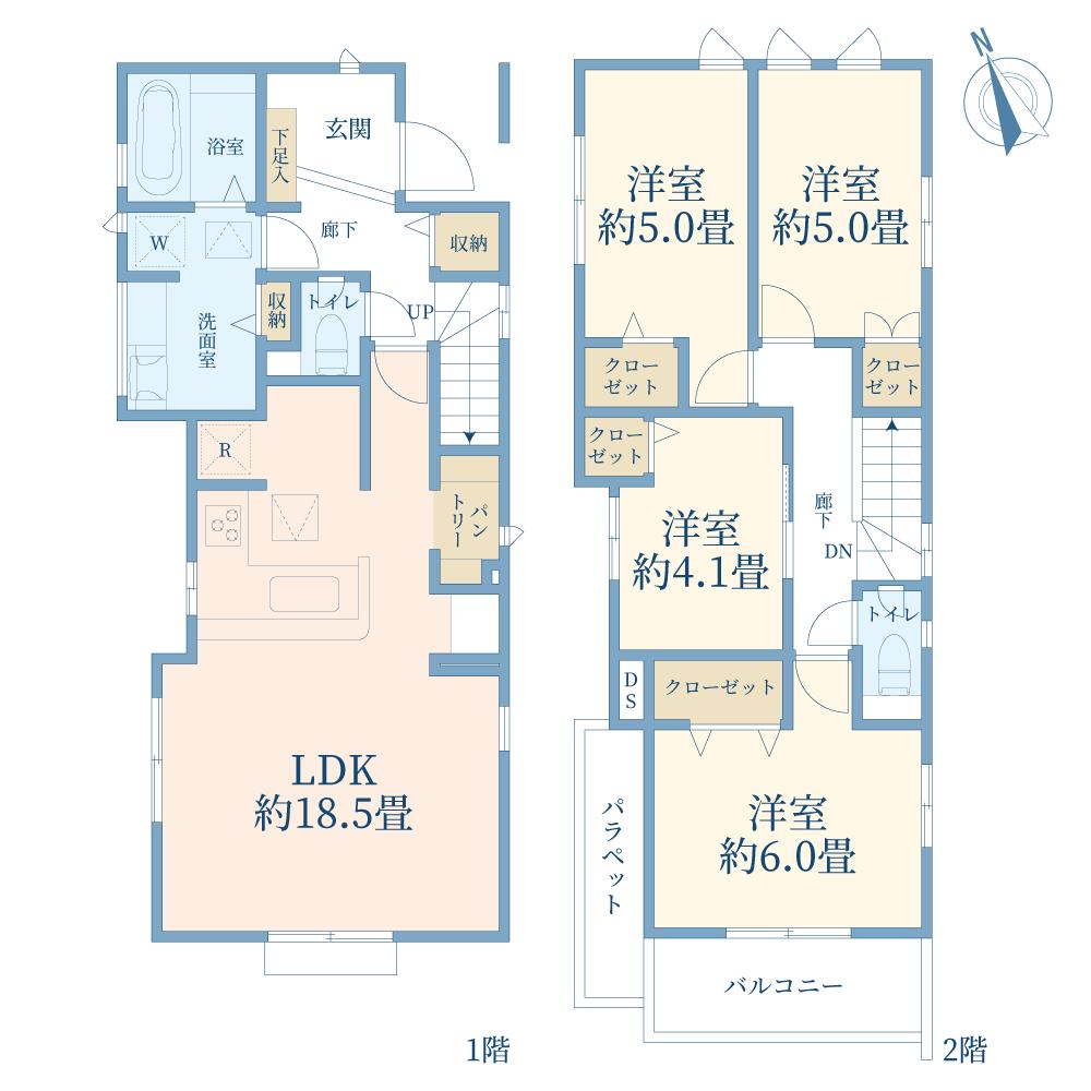 全室収納完備。豊富な収納設計も暮らしやすさのポイントです。1号棟完成予想図※パースはイメージ画像の為、実際と多少異なる場合がございます。絵中の家具・調度品等は販売対象には含まれません。